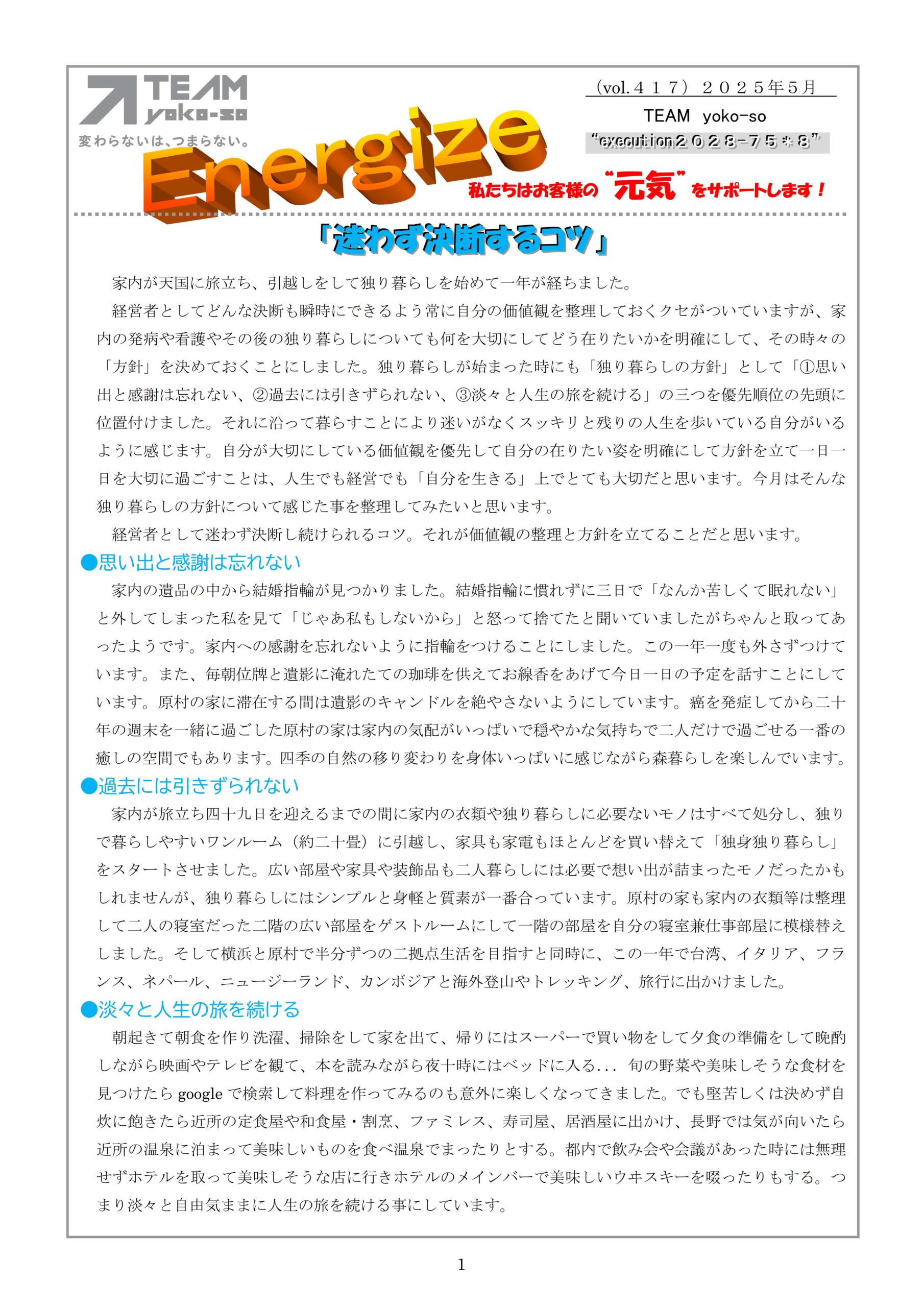 (vol.417)2025年5月 「迷わず決断するコツ」