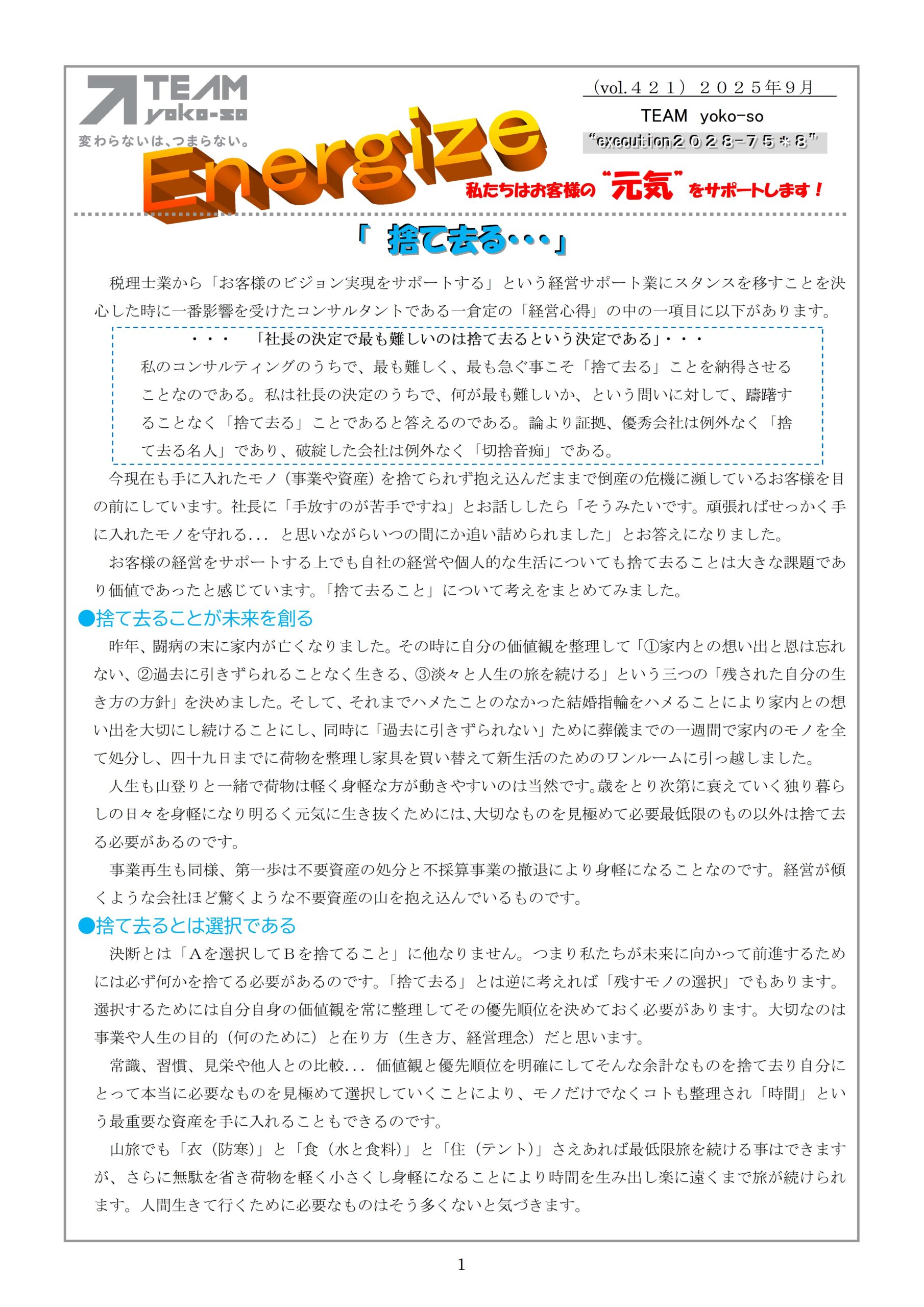 (vol.421)2025年9月 「捨て去る・・・」